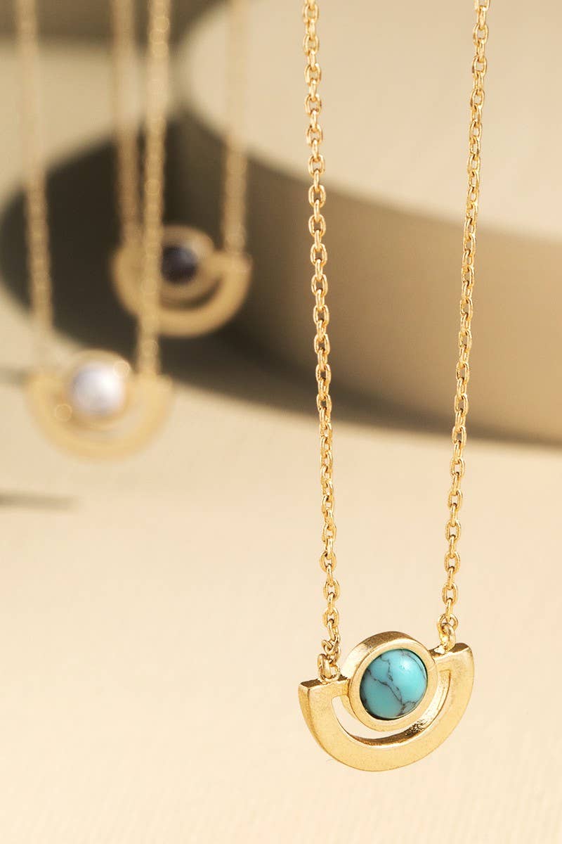 Brass Metal Round Natural Stone Necklace: WGD/TQS-TURQUOISE