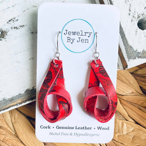 • Knot Earrings: Red w/Flowers Earrings