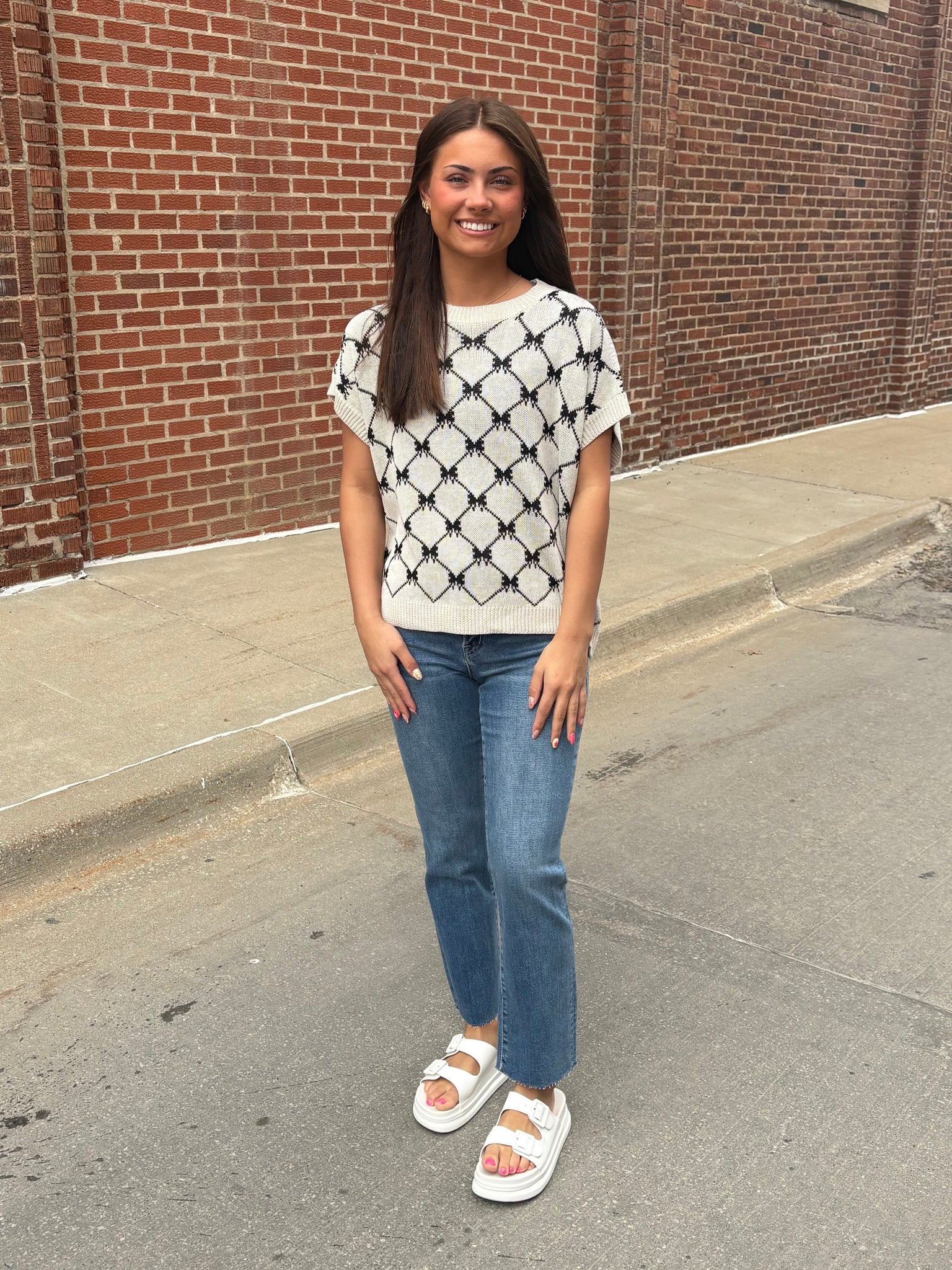 Oatmeal Bow Pattern Sweater Vest
