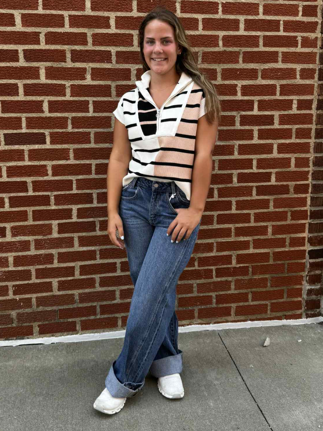 - 🌺Material: 50% Viscose 28% Polyester 22% Polyamide 🌺Pattern: Striped 🌺Neckline: Collar 🌺Sleeve: Sleeveless