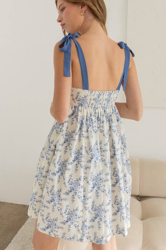 Blue Floral Tie Strap Dress