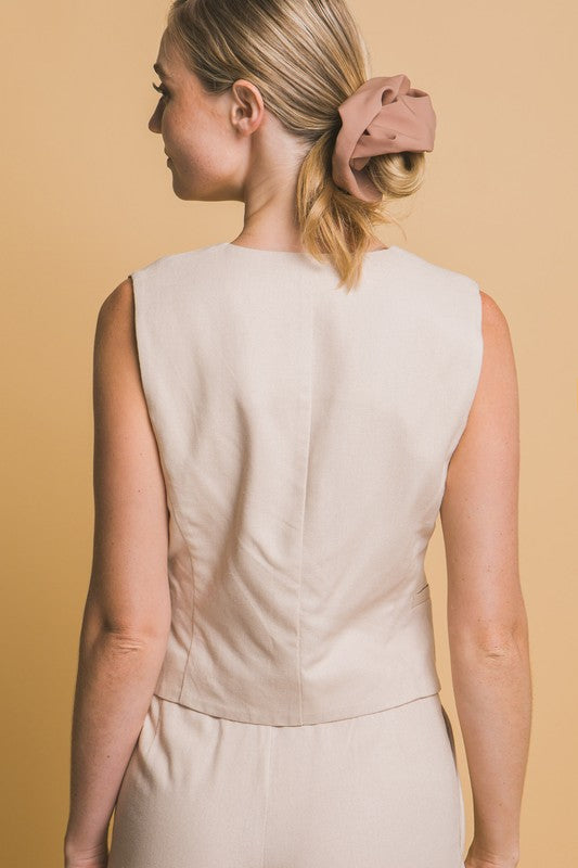 Khaki Linen Button-Up Vest