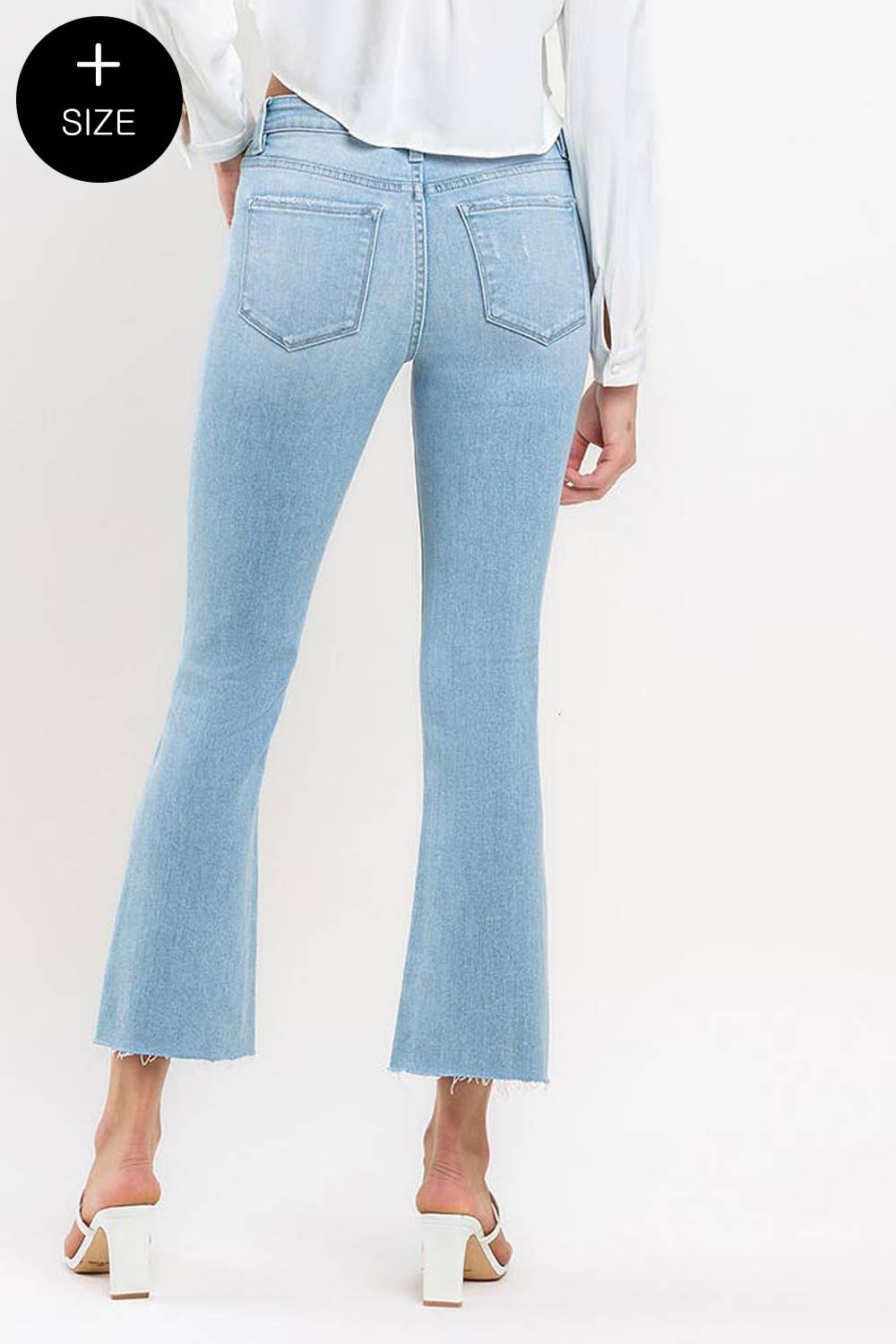 • PLUS SIZE MID RISE ANKLE BOOTCUT JEANS COMFORT STRETCH DENIM, MID RISE WAIST, RAW HEM, ANKLE LENGTH, BOOTCUT JEANS