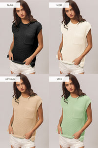 • Patch Pocket Sleeveless Midweight Sweater Top