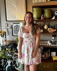 • Floral Jacquard V-neck Butterfly Cap Sleeve Dress