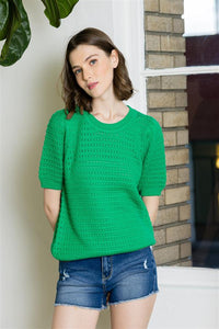 • Green Puff Sleeve Short Sleeve Sweater
