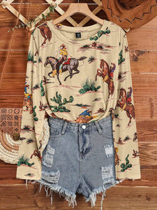 • Wild Western Cowboy Rodeo Print Long Sleeve Tee