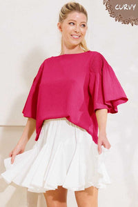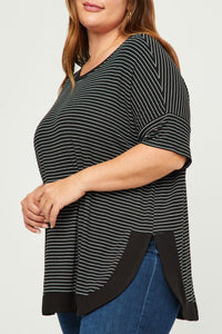 • Ribbed Stripe Shirt Tail Banded Dolman Top