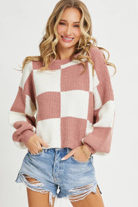 • Olive Rib Knit Henley Top with Plaid Contrast Trim