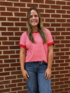 • Brick Scallop Trim Tie Puff Sleeve Top