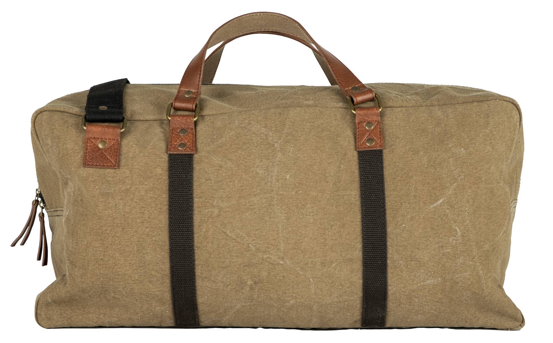 Short Description: Whether you're heading to the gym or off for the weekend, this smart, rugged up-cycled canvas duffel bag will be your new go-to bag.