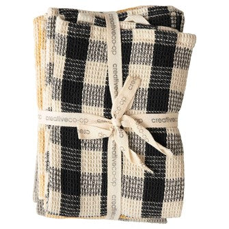• 28"L x 18"W Cotton Waffle Weave Tea Towels, Gingham, Set of 3