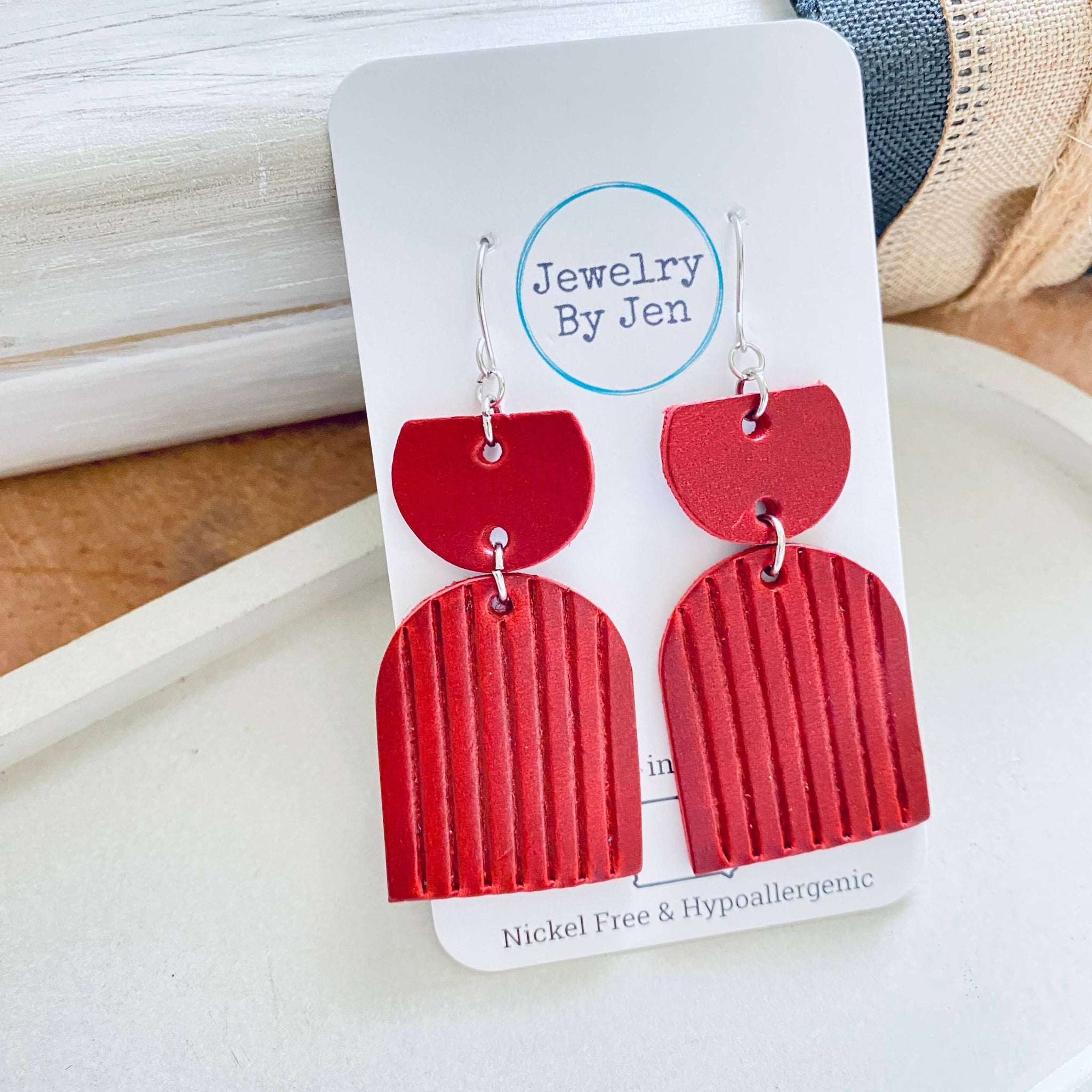 Measures about 1.75" long. Genuine leather. Stainless steel hook.